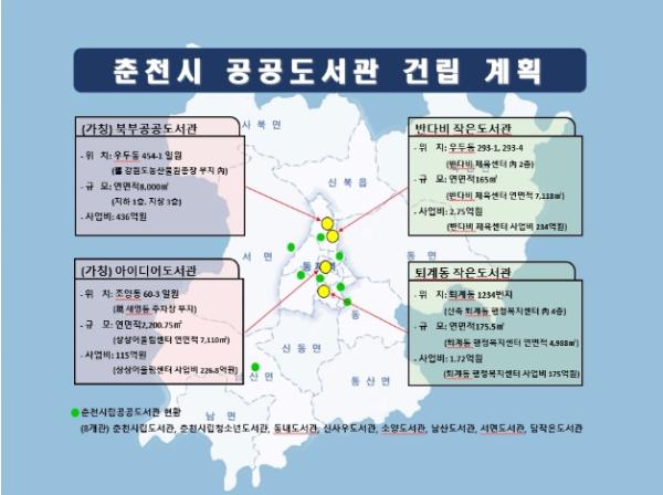 이처럼 내년을 시작으로 2027년까지 4개 도서관이 모두 개관되면 춘천시립공공도서관은 모두 12곳으로 늘어난다.