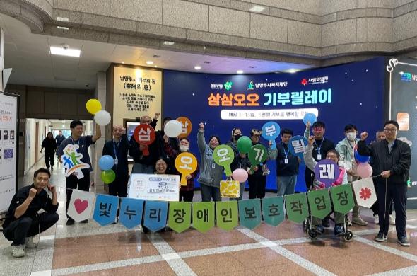 [한국뉴스타임=편집국] 남양주시복지재단은 지난 10일 빛누리장애인보호작업장이‘삼삼오오 기부릴레이’에 11번째 주자로 참여했다고 전했다.