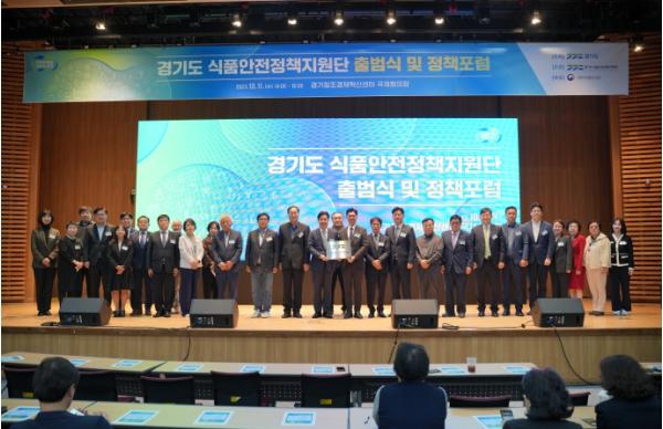 경기도는 11일 성남시 경기창조경제혁신센터 국제회의장에서 오병권 경기도 행정1부지사, 식품 업체 관계자 등 300여 명이 참석하는 가운데 ‘경기도식품안전정책지원단 출범식 및 정책포럼’을 개최하고 경기도식품안전정책지원단 현판 수여식 및 경기도 식품안전 정책 추진 전략을 발표했다.