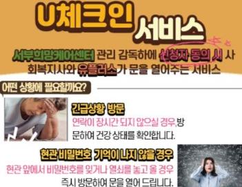 서부희망케어센터 김기수 센터장은 “U체크인 서비스 활성화를 통해 홀로 거주하는 가구의 긴급한 상황에 대응할 수 있도록 노력하겠다.”라며“U체크인 서비스 외에도 남양주시 서부권역의 복지 대상자들이 마음 편히 살 수 있는 지역을 만들기 위해 최선을 다하겠다.”라고 밝혔다.