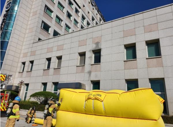 가평소방서는 ▲굴절사다리차를 활용한 인명구조 ▲에어매트 전개 인명 구조 훈련▲요양병원 화재 시 현장 진입 동선 파악 ▲표준 작전 절차(SOP)에 의한 현장 지휘 체계 확립 등을 중심으로 훈련을 진행했다.