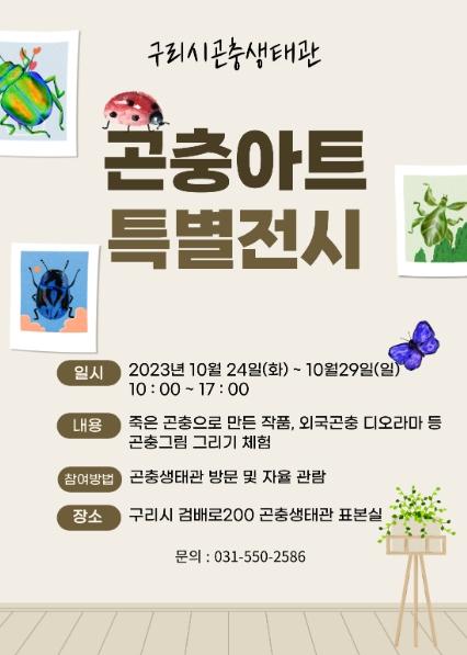 [한국뉴스타임=편집국] 구리시는 오는 10월 24일부터 29일까지 구리시 곤충생태관 표본실에서 ‘곤충아트 특별전시회’를 운영한다.
