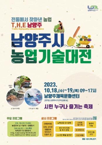이번 농업기술대전은‘전통에서 찾아낸 농업, T.H.E.(Traffic Highqualit Education&eco) 남양주’라는 주제로 열리며, 농축산물 전시·판매·체험존, 전통놀이존, 도시농업힐링존 등 다양한 부스를 운영해 전통문화와 농업, 도시문화가 어우러지는 축제의 장이 마련될 예정이다.