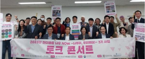 [한국뉴스타임=편집국] 경기도여성가족재단 경기도양성평등센터는 지난 12일 오후 수원시 재단 회의실에서 ‘2023년 젠더공감 나우(NOW) 나부터, 우리부터! 3기’ 토크 콘서트를 열고 그동안의 활동을 공유했다.