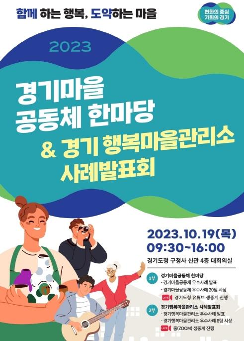 [한국뉴스타임=편집국] 경기도가 오는 19일 수원시 팔달구 옛 경기도청사 신관에서 마을공동체 활동가와 행복마을관리소 지킴이들이 한자리에 모여 소통하는 ‘2023 경기마을공동체 한마당 & 경기 행복마을관리소 사례발표회’를 개최한다.