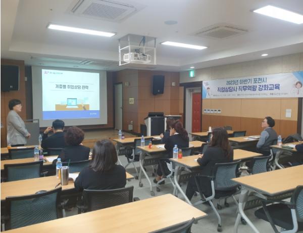[한국뉴스타임=편집국] 포천시는 지난 13일 포천시근로자종합복지관 4층 대회의실에서 포천일자리센터 및 읍·면에 배치된 직업상담사를 대상으로 ‘2023년 하반기 직업상담사 직무역량 강화교육’을 실시했다.