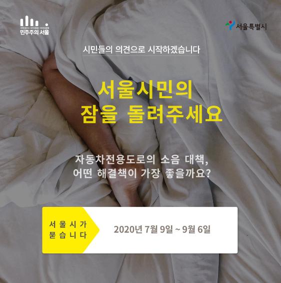 [KNT한국뉴스타임] 서울시가 “서울시민의 잠을 돌려주세요”를 부제로 온라인 의견수렴을 실시한다. 이번 의견수렴은 자동차전용도로와 맞닿은 곳에서 생활하는 시민들의 소음피해를 줄이고, 삶의 질을 향상시킬 효과적인 대책마련을 위해 진행된다.