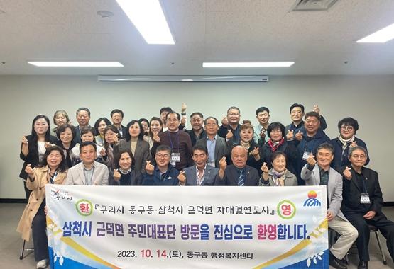 [한국뉴스타임=편집국] 구리시 동구동 행정복지센터는 지난 14일 삼척시 근덕면 최재규 부면장과 근덕면발전위원회 등 방문단 15명을 맞이하며 복지·문화·관광 등에서 상호 우호 관계를 돈독히 다지는 시간을 가졌다.