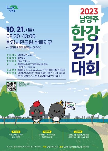[한국뉴스타임=편집국] 남양주시체육회가 주최하고 남양주시체육회와 남양주시걷기연맹이 공동 주관하는 ‘2023 남양주 한강 걷기대회’가 오는 21일 한강시민공원 삼패지구 일원에서 개최된다.