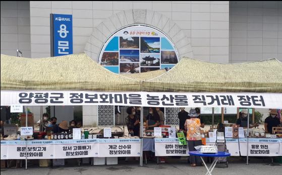 지난 10일, 양평군 내 9개 정보화마을에서는 용문역 앞에서 코로나19 장기화에 따른 생활속 거리 두기를 지키면서도 어려움에 처한 ‘지역경제를 살릴 수 있는 소비’를 돕고자 농·특산물 직거래 장터를 개최하였다. 이번 행사는 정보화마을 농가 살리기 및 홍보를 위해 기획되었으며, 오는 7월 25일에도 한 차례 더 진행될 계획이다.