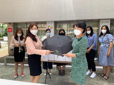 성남시는 7월 15일 오후 2시 금광동 다문화가족지원센터에서 성남시여성단체협의회 회원들과 다문화가족지원센터 자조모임 회원 등이 참석한 가운데 양산 전달식을 했다.