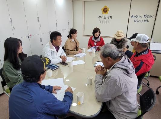 [한국뉴스타임=편집국] 경기도의회 보건복지위원회 이인애 의원(국민의힘, 고양2)이 25일 고양상담소에서 국민의힘 고양시갑 권순영 당협위원장, 고양특례시청 체육정책과 관계자들과 함께 고양시 파크골프협회 및 덕양구 관산동·고양동·내유동·사리현동 파크골프 동호회의 체육공원 파크골프장 건립 건의 민원을 청취했다.