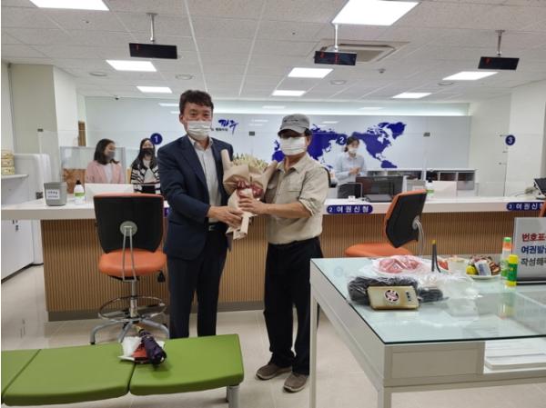 시는 이날 처음으로 여권을 신청한 K씨(운정동 거주)에게 축하 꽃다발과 파주시 특산품을 선물했다.