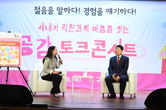 본격적으로 진행된 토크콘서트 시간에는 신·구조어 퀴즈 및 세대공감 퀴즈 등으로 즐거운 분위기가 조성됐으며, ‘시장님 할 말 있어요’ 코너를 통해 신규공직자들의 희망 사항 및 질문 사항에 대해 듣고 답변하는 솔직담백한 대화의 시간을 가졌다.