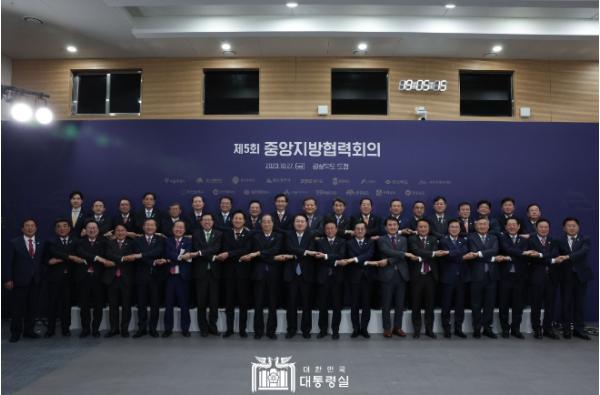 [한국뉴스타임=편집국] 윤석열 대통령은 10월 27일 경상북도 안동시를 방문해 제5차 중앙지방협력회의를 주재하며 지방소멸 위기에 대한 지역 현장의 의견을 청취하고 ‘대한민국 어디서나 잘 사는 지방시대’의 구현을 위한 방안을 모색했다.