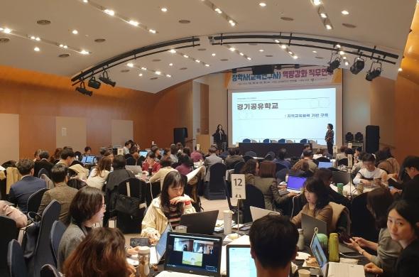 포럼에는 도교육청과 교육지원청, 직속기관 소속 장학사와 교육연구사 100여 명이 참석해 지역교육협력플랫폼(경기공유학교) 운영 방향을 중심으로 주제 발표와 질의응답, 토의를 진행했다.