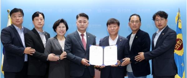 [한국뉴스타임=편집국] 경기도의회 더불어민주당 남종섭 대표의원과 국민의힘 김정호 대표의원은 30일 더불어민주당 대표의원실에서 체계적이고 능률적인 제372회 정례회 개최를 위한 합의문에 서명했다.
