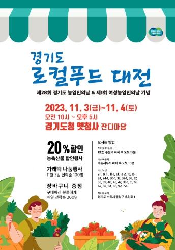 [한국뉴스타임=편집국] 경기도가 ‘제28회 경기도 농업인의 날’을 맞아 11월 3~4일 수원시 팔달구 경기도청 옛청사 잔디마당에서 ‘로컬푸드 대전’을 열고 경기도 생산 농·축·수산물을 20% 할인된 가격으로 판매한다.