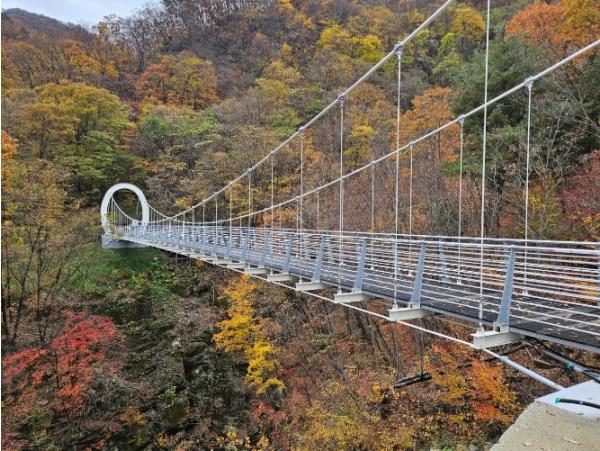 이런 가운데 군은 관내 유일한 군립공원인 북면 명지산(1267m)에 ‘하늘·구름 다리 설치’ 사업이 완료돼 오는 11월 3일 개통식을 앞두고 있다고 31일 밝혔다.