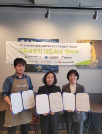 ‘고용브릿지 네트워크 협약’은 2023년 경기북부사회복지공동모금회 지원사업으로 진행하는 알쓸신잡 프로그램의 일환으로 마련됐으며, 이날 협약식에는 길재경 남양주시장애인복지관 관장, 이춘오 마석고등학교 교장, 권오융 카페에클레시아 대표 등이 참석했다.
