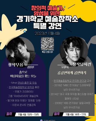 이번 전문가특강은 경기도형 예술영재교육 과정을 이수한 학생 104명이 참여하며, 경기학교예술창작소에서 4일과 5일 운영한다.