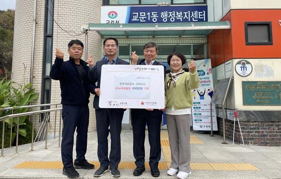 [한국뉴스타임=편집국] 구리시 교문1동 행정복지센터는 3일 한국석유공사 구리지사로부터 관내 저소득 취약계층을 위한 온누리상품권(500만 원)을 후원받았다.