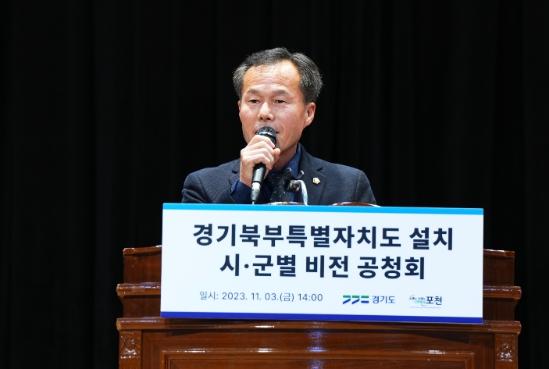 경기북부특별자치도 설치에 따른 각 시·군별 비전 및 발전전략을 발표하고 각 시·군별 비전 및 발전전략에 대한 전문가 토론 및 도민의견을 수렴하기 위해 개최된 이번 행사는 포천시의회 의장 및 포천시장, 도 의원, 지역주민 등이 참석했다.