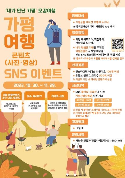 군은 가평을 방문하는 여행자가 데이트코스, 맛집 탐방, 캠핑 도장 깨기 등 ‘내가 만난 가평’ 오감 여행을 테마로 한 콘텐츠를 SNS에 인증하면 좋아요·조회수에 따라 최대 10만 원의 가평사랑상품권을 지급할 계획이다.
