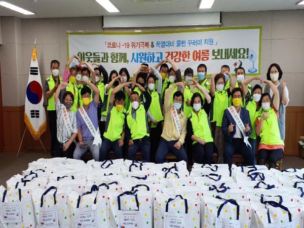 협의체 위원들은 16일 초복을 맞아 냉방시설이 열악한 주거환경에 거주하고 있는 비정형거주 어르신과 온열질환 등의 위험이 있는 기저질환 어르신 등 취약계층 50명에게 폭염대비 후원 물품꾸러미를 지원했다.