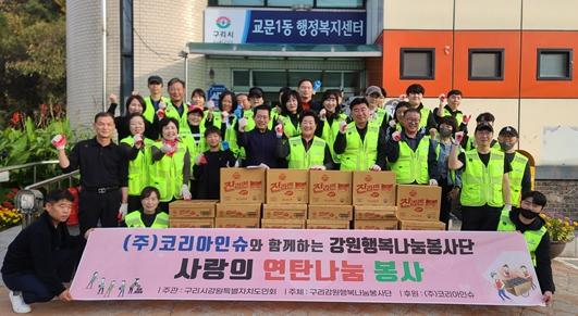백경현 구리시장은 “관내 어르신들을 위해 봉사에 참여해주신 강원행복나눔봉사단에 깊이 감사드리며, 후원 받으신 어르신들이 다가오는 겨울을 따뜻하고 건강하게 지내시길 바란다.”라고 전했다.