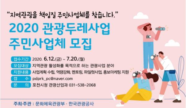 참여대상은 관광사업 창업 및 경영개선을 희망하는 포천시민을 포함한 5인 이상의 공동체로 오는 20일까지 포천시 관광두레PD 이메일(pdprk_pc@naver.com)로 서류 접수하며, 1차 대면심사, 2차 현장실사를 거쳐 8월말 선정결과를 발표하게 된다.