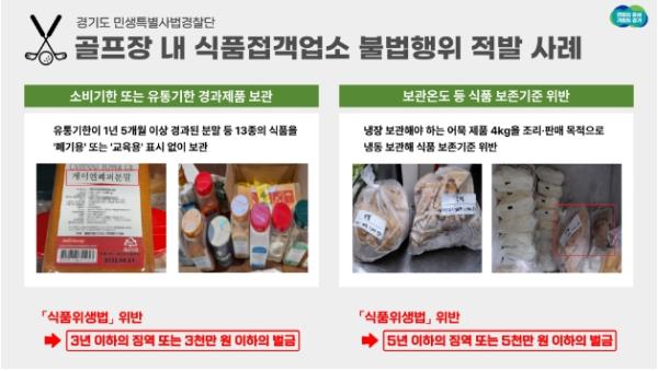 [한국뉴스타임=편집국] 경기도 민생특별사법경찰단은 지난 10월 10일부터 20일까지 12개 시군 63개 골프장 내 클럽하우스 등 식품접객업소 150곳을 대상으로 집중 단속한 결과 식품위생법 및 원산지표시법을 위반한 9개 업소(12건)를 적발했다고 9일 밝혔다.