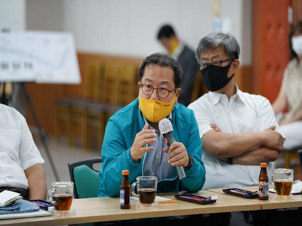 이날 토론회는 조광한 시장을 비롯한 박신환 부시장, 실국소과장, 화도수동행정복지센터장, 김용완 화도읍 이장협의회장 등 주민대표 20여명이 참석한 가운데, 먼저 진수용 하천시설팀장이 사업대상지인 마석우천 산책로 확장 관련 개선안에 대해 주민들에게 설명하였으며, 이어 화도읍 주민들이 준비한 청계천 벤치마킹 동영상 시청 후 향후 사업 추진방향 등에 대해 논의했다.