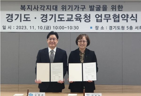 [한국뉴스타임=편집국] 경기도교육청은 교육 현장의 복지 사각지대 학생이 신속하게 지원받을 수 있도록 경기도와 업무협약을 체결했다.