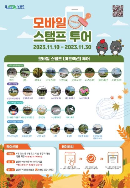 시 관계자는 “모바일 스탬프 투어는 전자지도를 기반으로 다양한 스마트 관광 콘텐츠를 제공함으로써 관광객들의 니즈를 충족할 수 있다.”라며 “앞으로도 남양주시 관광 활성화를 위해 다양한 시책을 발굴해 추진해나가겠다.”라고 전했다.