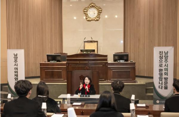 [한국뉴스타임=편집국] 남양주시의회는 지난 11월 10일 오남고등학교 학생자치회 학생들을 대상으로 의회체험교실을 진행했다.