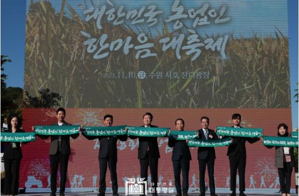 [한국뉴스타임=편집국] 윤석열 대통령은 11월 10일 오후 수원 서호 잔디광장에서 개최된 ?제28회 농업인의날 기념식?에 참석했다. 오늘 행사는 농업이 국민 경제의 근간임을 전 국민에게 알리고, 국민의 식탁을 책임지는 220만 농업인들의 노고를 격려하기 위해 마련됐다. 특히, 첨단기술을 활용한 농업의 미래 성장산업화는 윤석열정부의 국정과제이다.