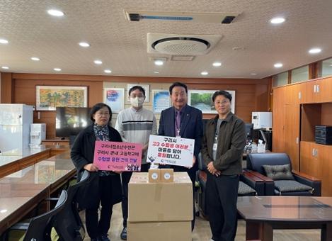 이번 행사는 수험생활에 지친 고3 청소년들을 응원하는 행사로, 구리시청소년재단 직원들은 7일 구리여고?수택고, 8일 구리고?토평고, 9일 갈매고, 10일 인창고?삼육고를 직접 방문해 간식을 나눠주며 학생들을 응원했다.