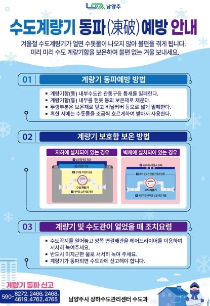 [한국뉴스타임=편집국] 남양주시는 오는 15일부터 내년 3월 15일까지 ‘동절기 한파대비 수도시설 동파 방지 종합대책’을 추진한다고 13일 밝혔다.