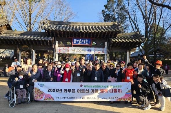 ‘가을 행복 나들이’는 사회적 고립감과 우울감에 취약한 65세 이상 어르신 30명을 대상으로 지역사회보장협의체 위원과 공무원 등 60여 명이 참여한 가운데 진행됐으며, 이웃과 함께 문화생활을 체험함으로써 정서적 유대감과 사회적 관계망을 형성하고 어르신들의 우울감을 해소해 삶의 활력을 불어넣고자 마련됐다.