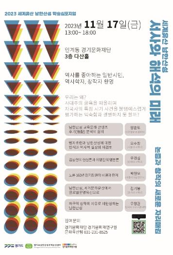 [한국뉴스타임=편집국] 경기도와 경기문화재단이 17일 경기문화재단 다산홀에서 ‘세계유산 남한산성, 서사와 해석의 미래-논증과 창작의 새로운 자리매김’이라는 주제로 학술 심포지엄을 개최한다.