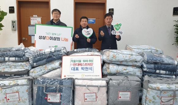 [한국뉴스타임=편집국] 남양주시 별내면은 지난 13일 ㈜현대베스트메탈(대표 박현석)에서 별내면 취약계층을 위한 겨울이불 50채를 기탁했다고 밝혔다.