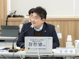 [한국뉴스타임=편집국] 경기도의회 교육행정위원회 장한별 의원(더불어민주당, 수원4)은 14일 양평교육지원청, 포천교육지원청을 대상으로 실시된 2023년도 행정사무감사에서 시설관리직의 결원문제, 종합고등학교 과정별 차등 없는 교육 등의 대한 문제 해결을 촉구했다.