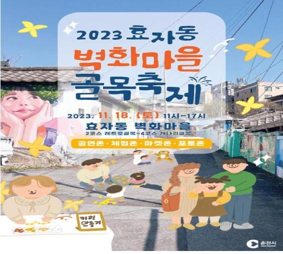 [한국뉴스타임=편집국] ‘효자동 벽화마을 골목 축제’가 오는 18일 오전 11시부터 오후 5시까지 효자1동 행정복지센터 인근에 조성된 벽화 골목에서 개최된다.