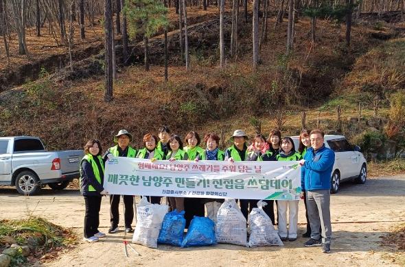 [한국뉴스타임=편집국] 남양주시 진접읍 지역사회보장협의체는 15일 장현천 산림교육원 연수원 길 하천 변에 방치된 쓰레기를 수거하기 위해 환경 정화 활동을 했다.