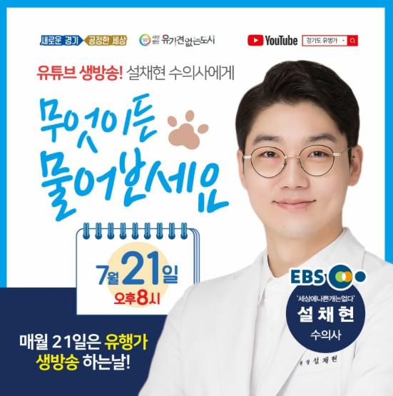 이밖에도 유기동물 입양 정보, 공개 입양 등 흥미로운 콘텐츠가 방송을 통해 제공될 예정이다. 생방송은 오후 8시부터 오후 9시 21분까지 1시간 21분 동안 진행되며, 유튜브 채널 ‘경기도 유행가’를 통해 참여할 수 있다.