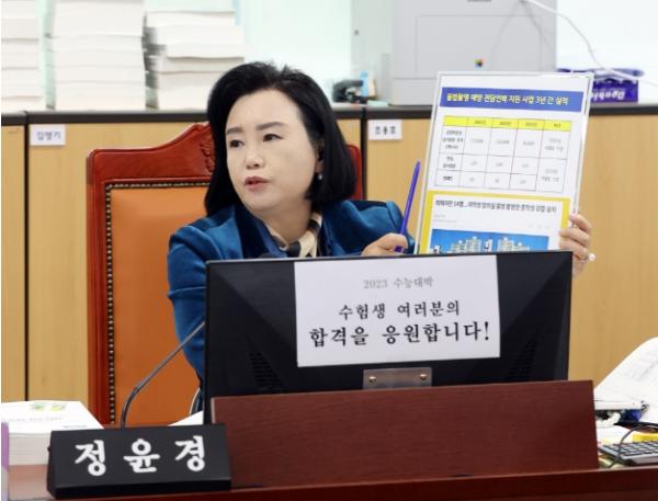 [한국뉴스타임=편집국] 경기도의회 여성가족평생교육위원회 정윤경 의원(더불어민주당, 군포1)은 16일에 경기도여성비전센터(박정숙 소장)를 대상으로 한 2023년 행정사무감사에서 ‘불법 촬영 예방 전담 인력 지원 사업’의 지난 3년간의 실적을 지적하며, 매년 축소된 불법 촬영 점검에 대해 지적했다.