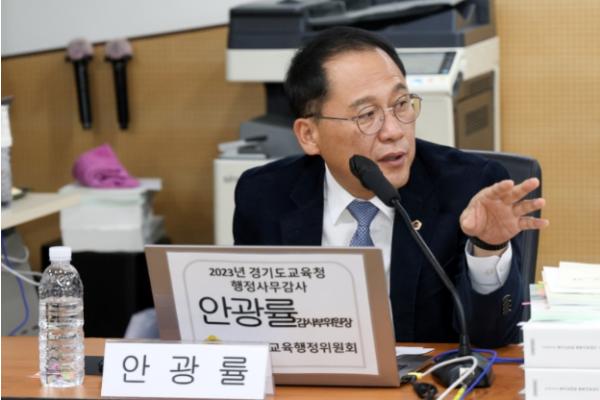 [한국뉴스타임=편집국] 경기도의회 교육행정위원회 안광률 부위원장(더불어민주당, 시흥1)은 15일 경기도교육복지종합센터 등 경기도교육청 직속기관에 대한 2023년도 행정사무감사에서, 근무지에 따라 교직원을 차별하는 경기도교육복지종합센터의 ‘교직원 후생복지 지원사업’ 운영 실태에 대해 강력히 개선을 촉구했다.