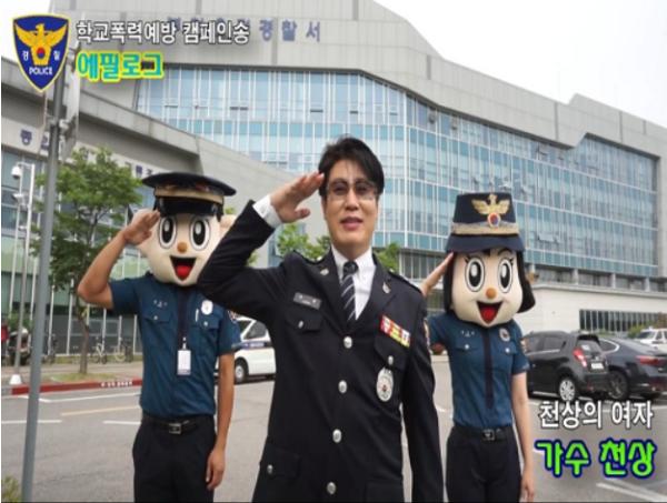 부천오정경찰서(서장 장병덕)는 작년 10월 부천오정경찰서 범죄예방 홍보대사로 위촉된 트로트 가수 천상과 함께 학교폭력 예방을 위한 홍보 동영상을 제작하였다.