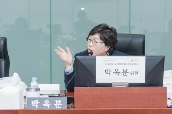 [한국뉴스타임=편집국] 경기도의회 보건복지위원회 박옥분 의원(더불어민주당, 수원2)이 20일 열린 경기도 복지국에 대한 보건복지위원회 행정사무감사에서 경기도 복지국 신규사업의 쏠림 문제와 더불어 경기도노인종합상담센터 상담사와 상담종사자들의 지원금액의 부족, 처우개선 문제 등에 대해 집중적으로 다뤘다.